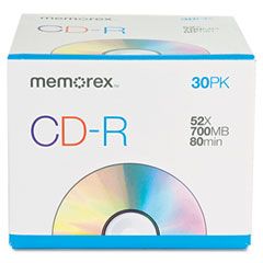 Memorex® CD-R Discs, 700MB/80min, 52x, w/Slim Jewel Cases, Silver, 30/Pack MEM04531