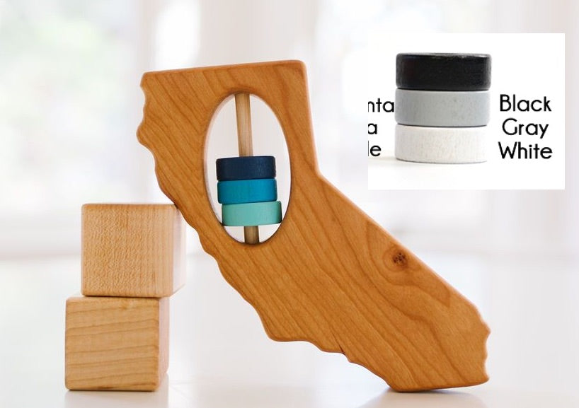 BANNOR TOYS BANNOR TOYS CALIFORNIA STATE WOODEN RATTLE – WHITE/BLACK/GRAY