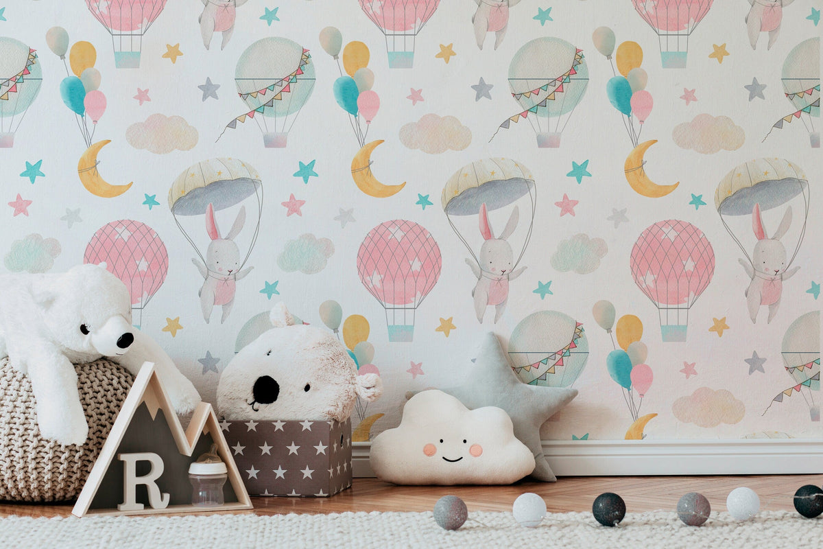 Ondecor Wall Decor Peel and Stick Removable Pink Bunny Nursery Wallpaper – B536