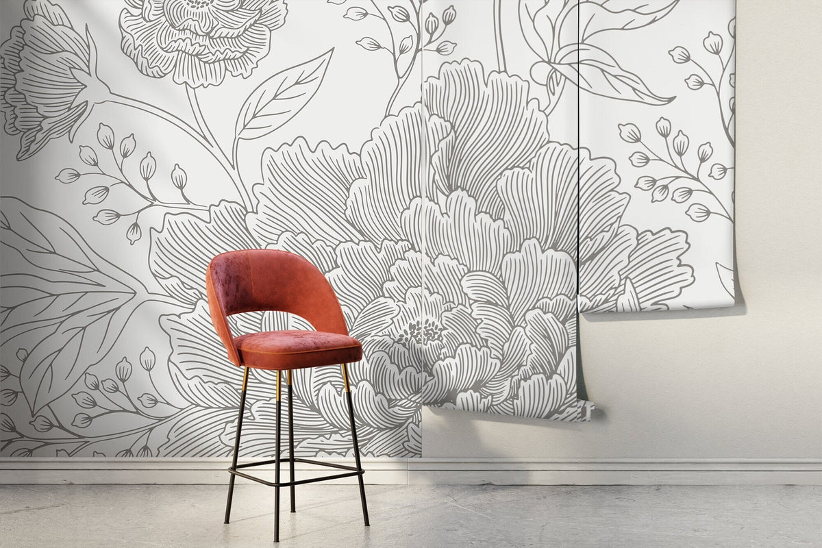 Ondecor Gray Large Floral Peel and Stick Removable Wallpaper Room Decor – C924