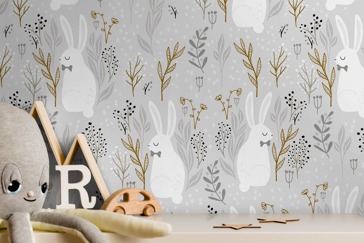 Ondecor Gray Bunny Nursery Peel and Stick Removable Wallpaper Room Decor – D124