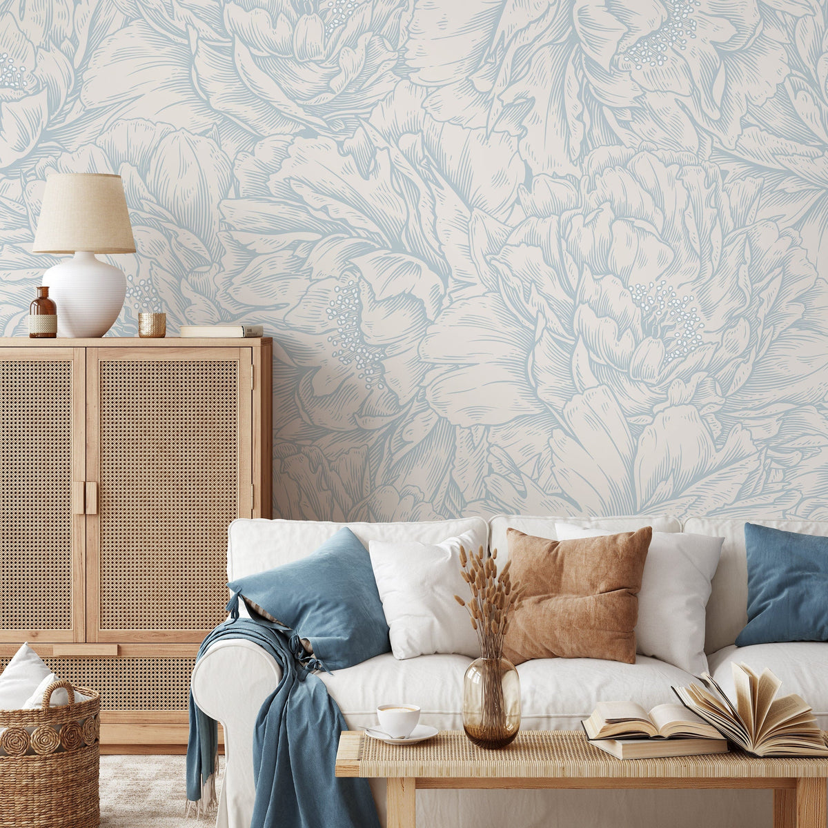 Ondecor Light Blue Peony Peel and Stick Removable Wallpaper Room Decor – D519