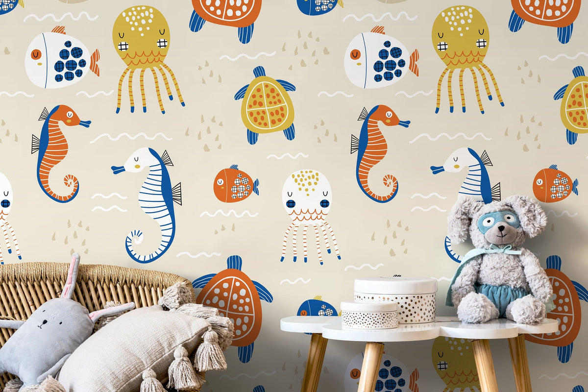 Ondecor Nursery Ocean Animals Peel and Stick Removable Wallpaper Room Decor – D110