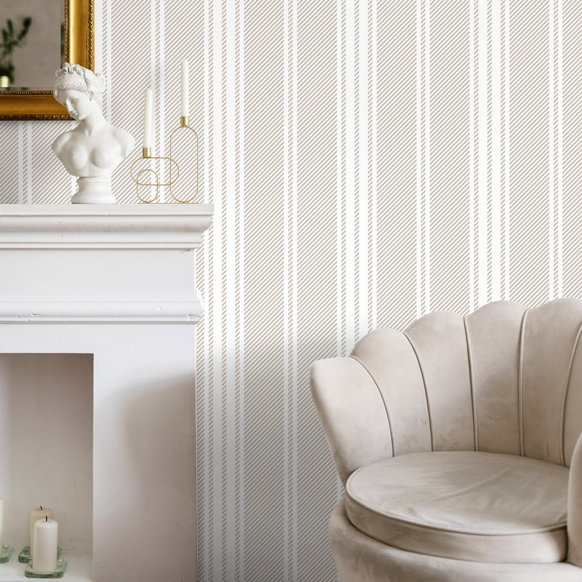 Ondecor Neutral Striped Farmhouse Peel and Stick and Traditional Wallpaper – D782