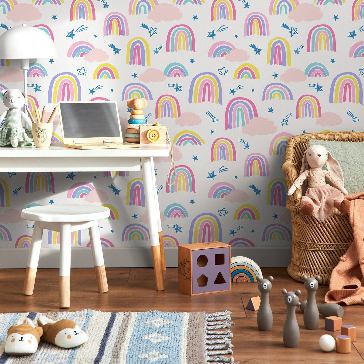 Ondecor Peel and Stick Removable Colorful Rainbow Kids Wallpaper – B299