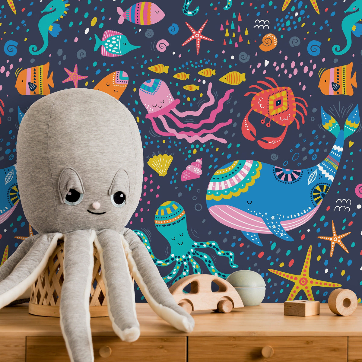 Ondecor Peel and Stick Removable Cute Sea Animals Kids Wallpaper – B752