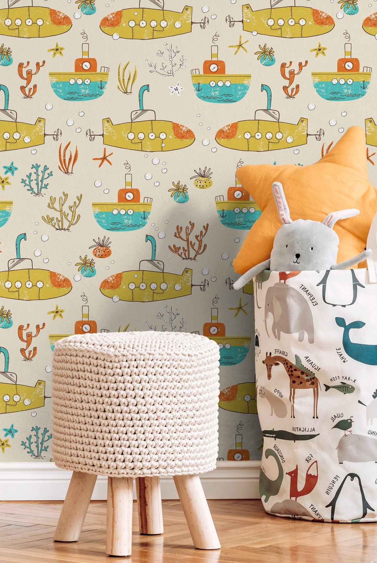 Ondecor Peel and Stick Removable Yellow Submarine Kids Wallpaper – C319