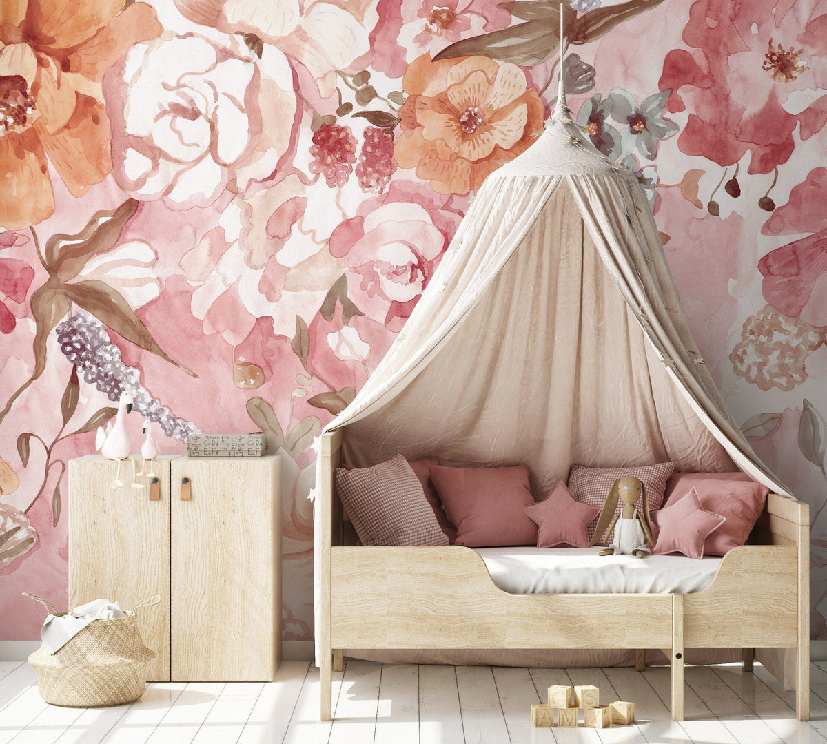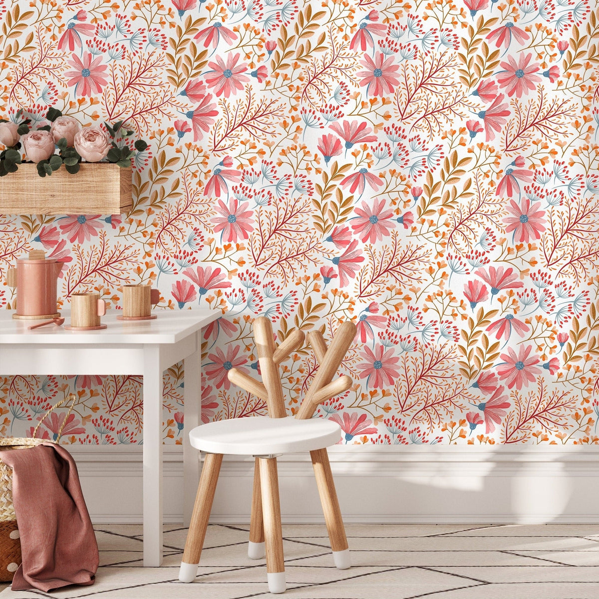 Ondecor Pink Boho Floral Wallpaper / Peel and Stick Wallpaper Removable Wallpaper Home Decor Wall Art Wall Decor Room Decor – D040