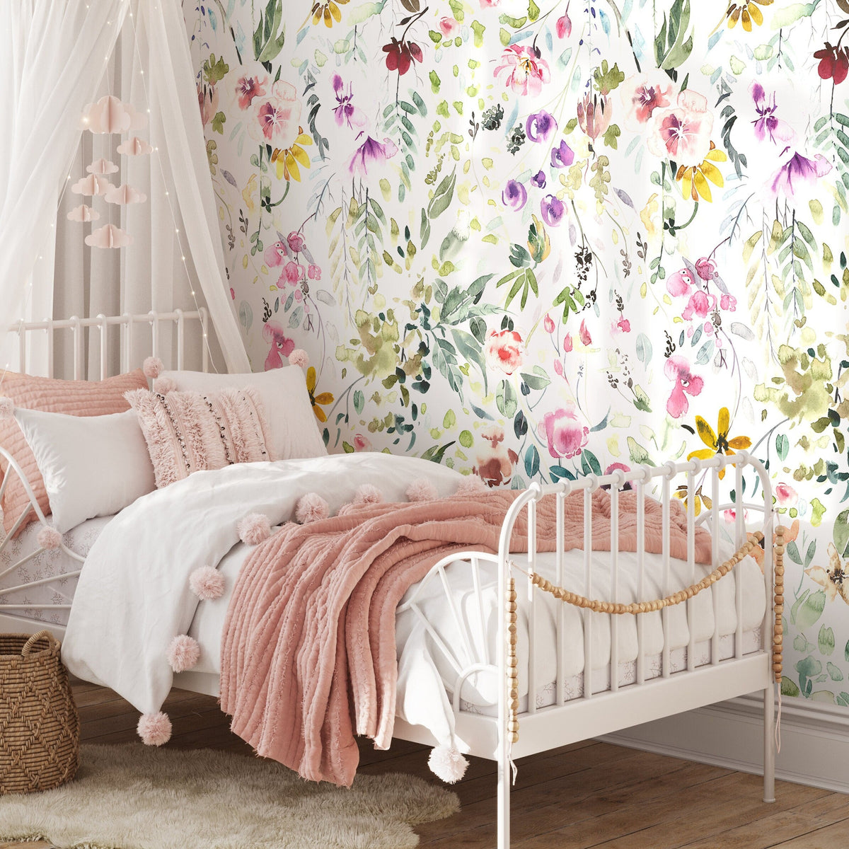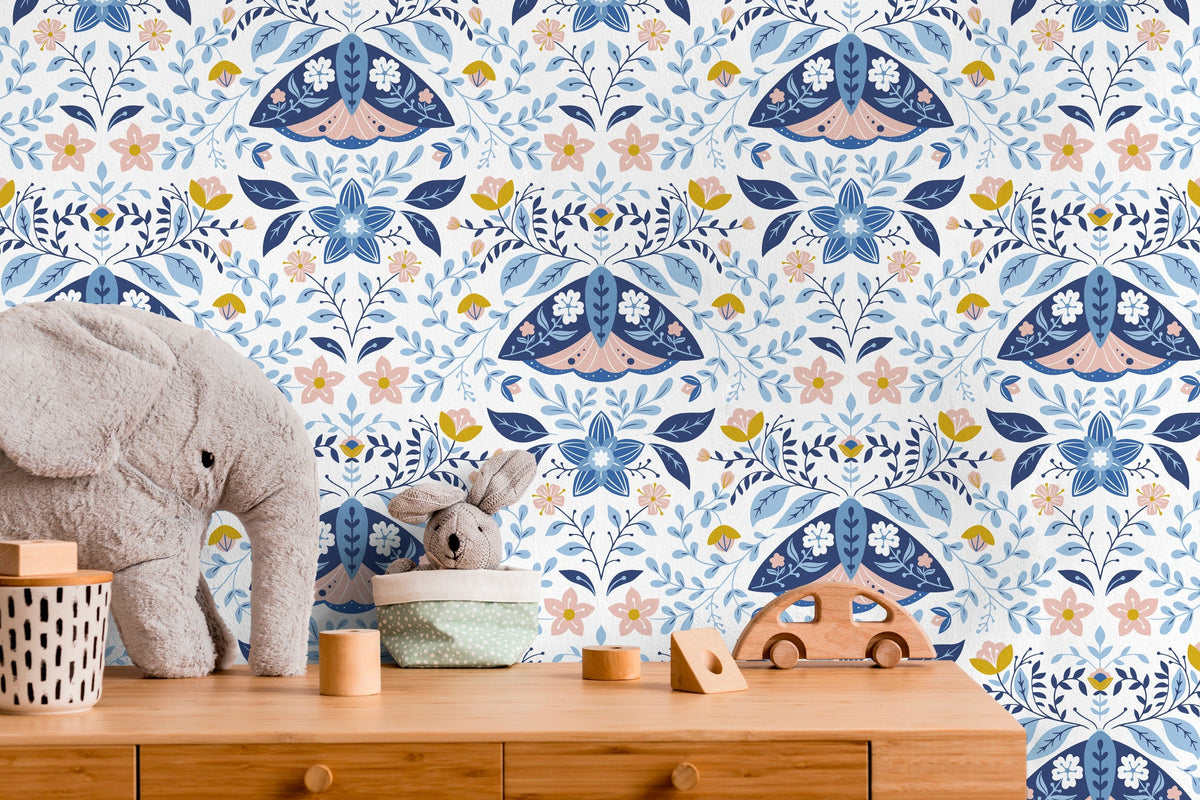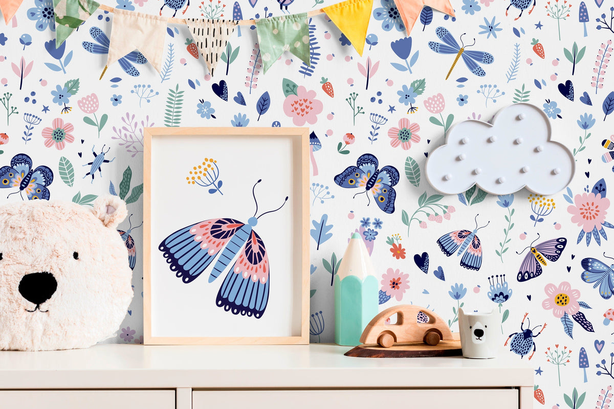 Ondecor Removable Scandinavian Temporary Peel and Stick Wallpaper, Butterfly and Flowers – B530
