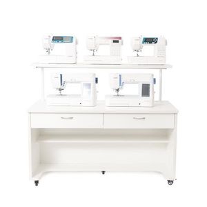 Arrow Cabinets A3501DS 2-Tier 55″ Wide 5 Sewing Machine Display Table, 2 Large Storage Drawers, LED Lights, Switch, Plug Strip with 6 Power Outlets
