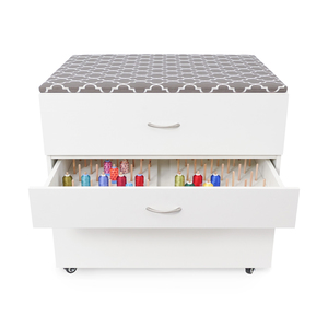 Arrow 2081 Kangaroo MOD Embroidery Storage 3 Drawer Cabinet in White on Casters, 33.13W x 40.25iD x 30.63H, Built-in Ironing Mat on Top, Rear Leaf,