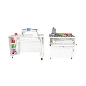 Arrow 1401 Christa Sewing Full-Size Workstation Cabinet White 56 1/2” W x 22 5/8” D x 29 3/8″ H with 2 Leaves