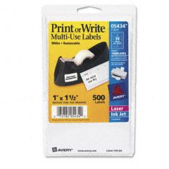 Avery® Print or Write Removable Multi-Use Labels, 1 x 1-1/2, White, 500/Pack AVE05434