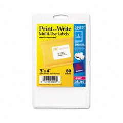 Avery® Print or Write Removable Multi-Use Labels, 3 x 4, White, 80/Pack AVE05453