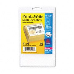Avery® Print or Write Removable Multi-Use Labels, 4 x 6, White, 40/Pack AVE05454