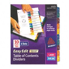 Avery® Ready Index Easy Edit Contents Dividers, Title 1-10, Letter, Multicolor, 6 Sets AVE12173