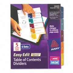 Avery® Ready Index Easy Edit Contents Dividers, Title 1-5, Letter, Multicolor, 6 Sets AVE12171