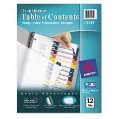 Avery® Ready Index Table/Contents Dividers, 12-Tab, Letter, Assorted, 12/Set AVE11819