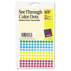 Avery® See-Through Removable Color Dots, 1/4″ dia, Assorted Colors, 864/Pack AVE05796
