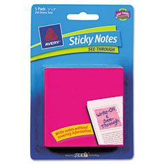 Avery® See-Through Sticky Notes, 3 x 3, 50 Sheets, Neon Magenta, 5/Pack AVE22690