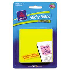 Avery® See-Through Sticky Notes, 3 x 3, 50 Sheets, Yellow, 5/Pack AVE22615