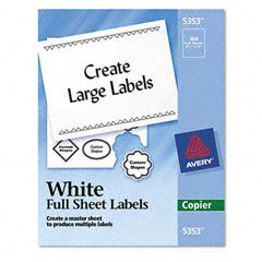Avery® Self-Adhesive Full-Sheet Shipping Labels for Copiers, 8-1/2 x 11, White, 100/Box AVE5353
