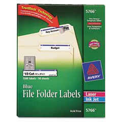 Avery® Self-Adhesive Laser/Inkjet File Folder Labels, Blue Border, 1500/Box AVE5766