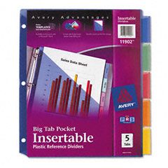 Avery® WorkSaver Big Tab Plastic Dividers, Slash Pocket, 5-Tab, Letter, Assorted AVE11902