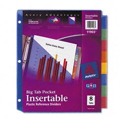 Avery® WorkSaver Big Tab Plastic Dividers, Slash Pocket, 8-Tab, Letter, Assorted AVE11903
