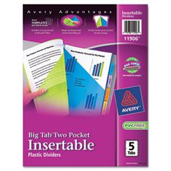 Avery® WorkSaver Big Tab Plastic Dividers, Two Slash Pockets, 5-Tab, Assorted AVE11906