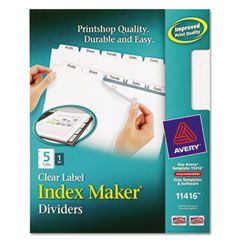 Avery® Index Maker Clear Label Dividers, 5-Tab, Letter, White AVE11416
