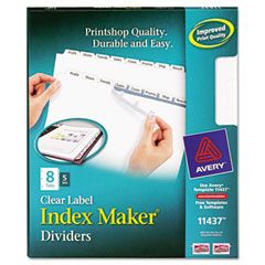 Avery® Index Maker Clear Label Dividers, 8-Tab, Letter, White AVE11417