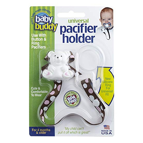 Baby Buddy Universal Pacifier Holder – Dots – Pink Chocolate