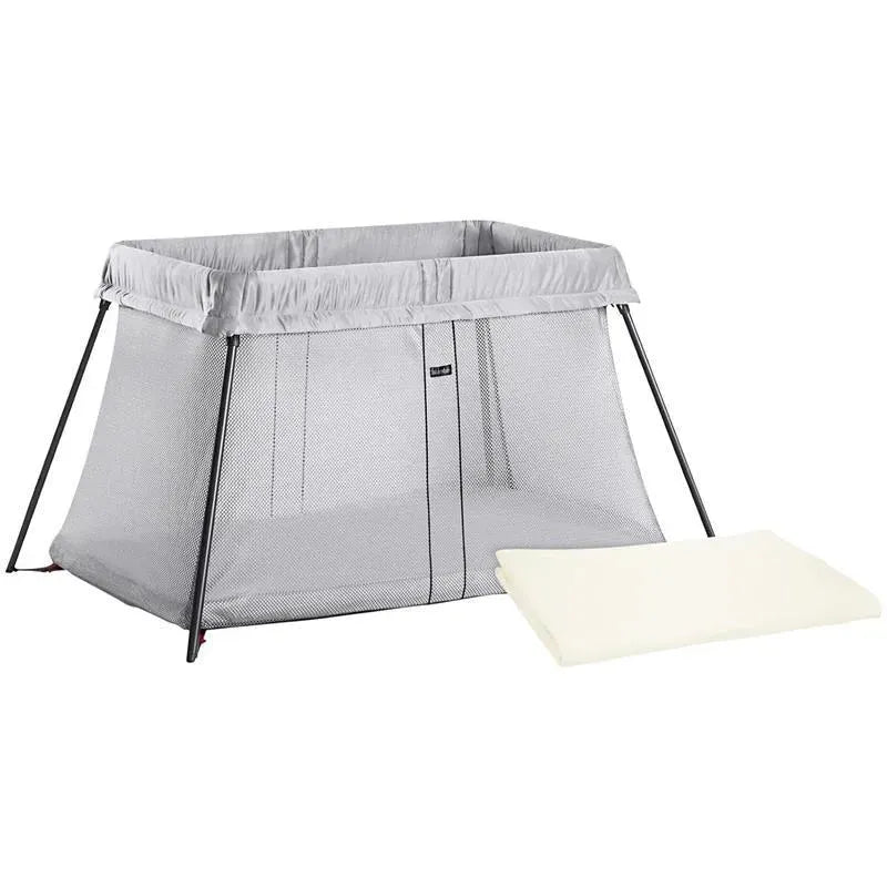 BABYBJORN – Travel Crib Light, Silver + Fitted Sheet Bundle Pack