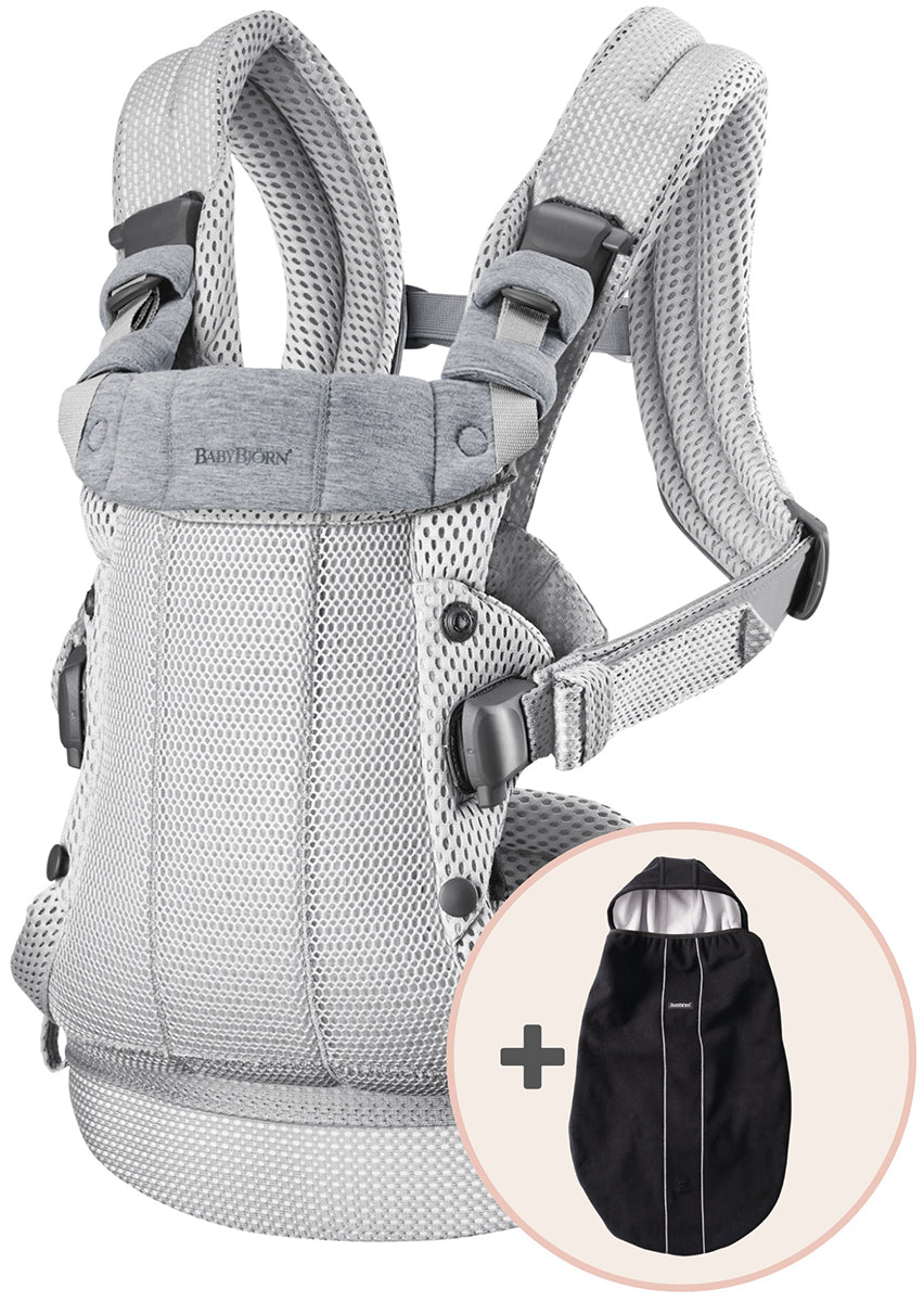 BabyBjorn Baby Carrier Harmony, 3D Mesh + Cover Bundle – Silver / Black