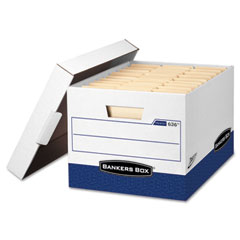 Bankers Box® R-Kive Max Storage Box, Letter/Legal, Locking Lid, White/Blue, 12/Carton FEL07243