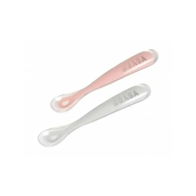 Beaba – 2Pk Silicone Spoon Travel Set, Cloud/Rose