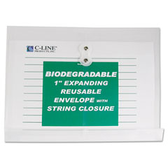 C-Line® Biodegradable Poly Envelope, String Closure, 1 Inch Gusset, 9 4/5 x 11 3/4,Clear CLI35117