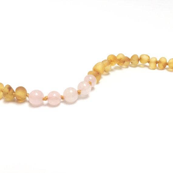 Raw Honey Amber + Rose Quartz Anklet or Bracelet