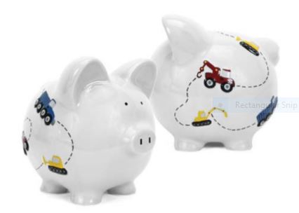 CHILD TO CHERISH CHILD TO CHERISH CONSTRUCTION PIGGY BANK, WHITE