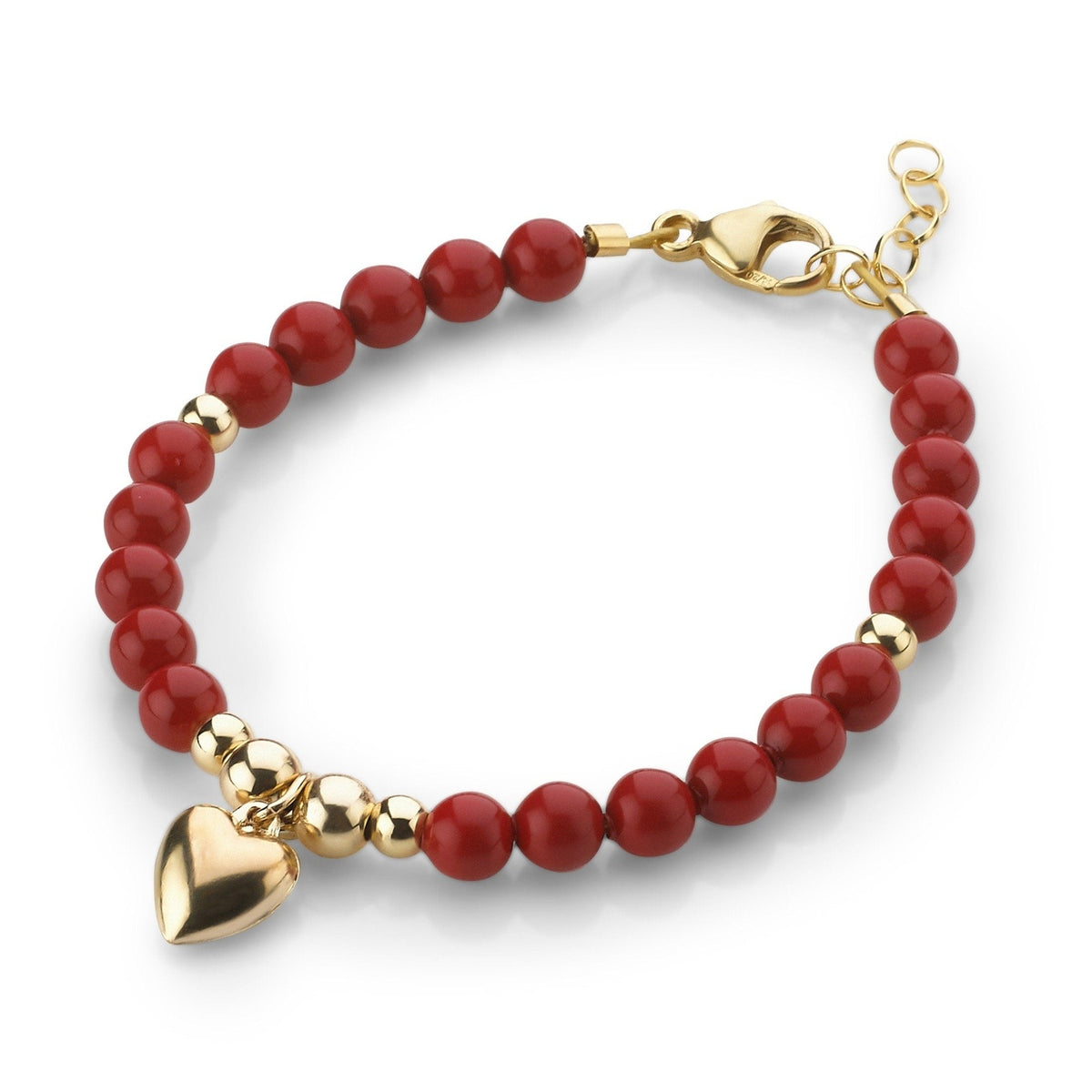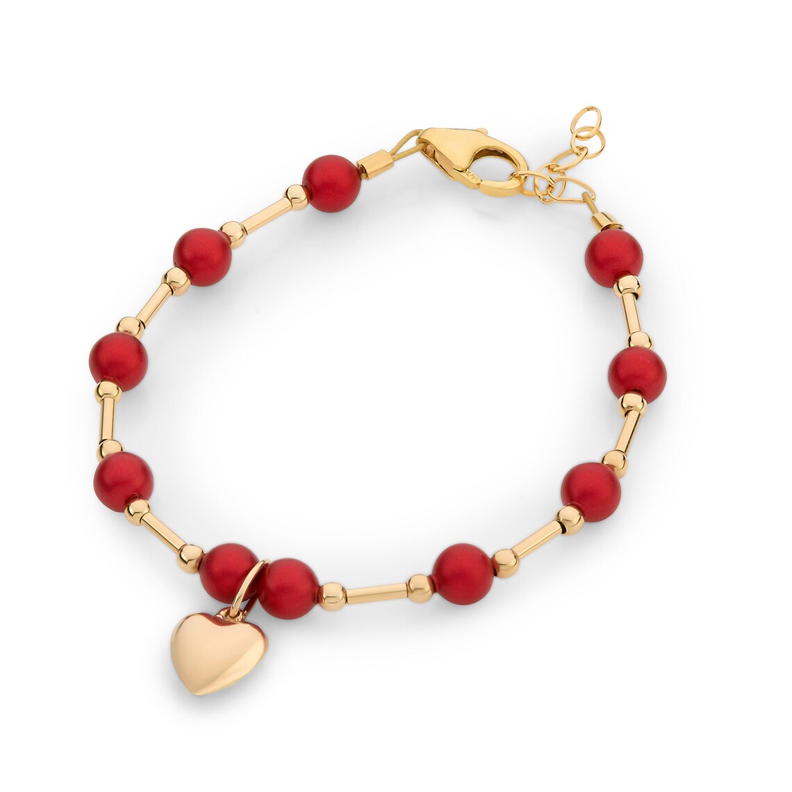 CRYSTAL DREAM RED PEARLS WITH GOLD TUBES AND GOLD HEART CHARM
