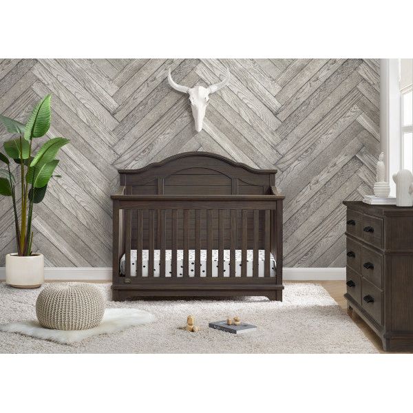 Delta Asher Convertible Crib with Toddler Rail and Double Dresser with Changing Tray – Rustic Grey