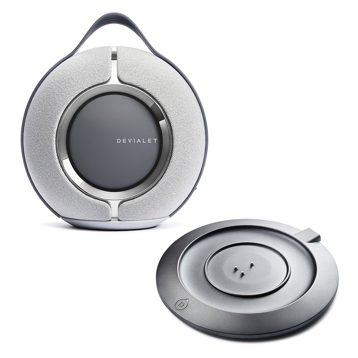 Devialet Mania Portable Bluetooth Smart Speaker (Light Grey) with Charging Station