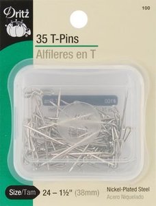 Dritz D100 T Pins 1-1/2-Inch (38mm) 35-Piece Box, Nickle Plated Steel, Size 24