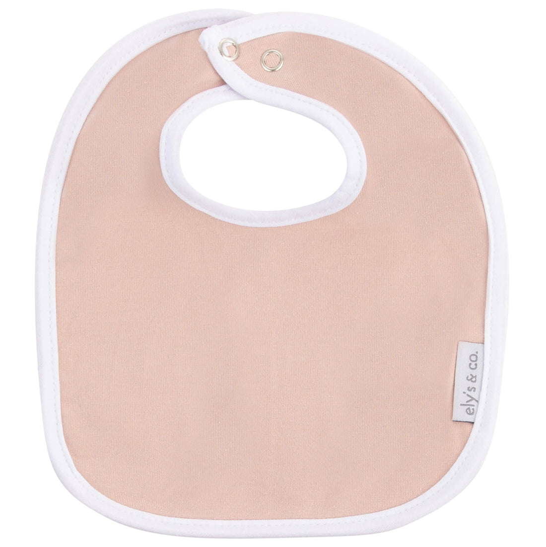 ELY`S & CO. SOLID JERSEY BIB WHITE TRIM -TERRY LINED – 0-6 MONTHS – BLUSH