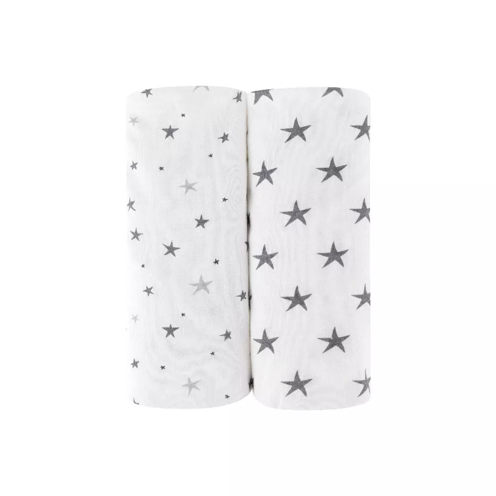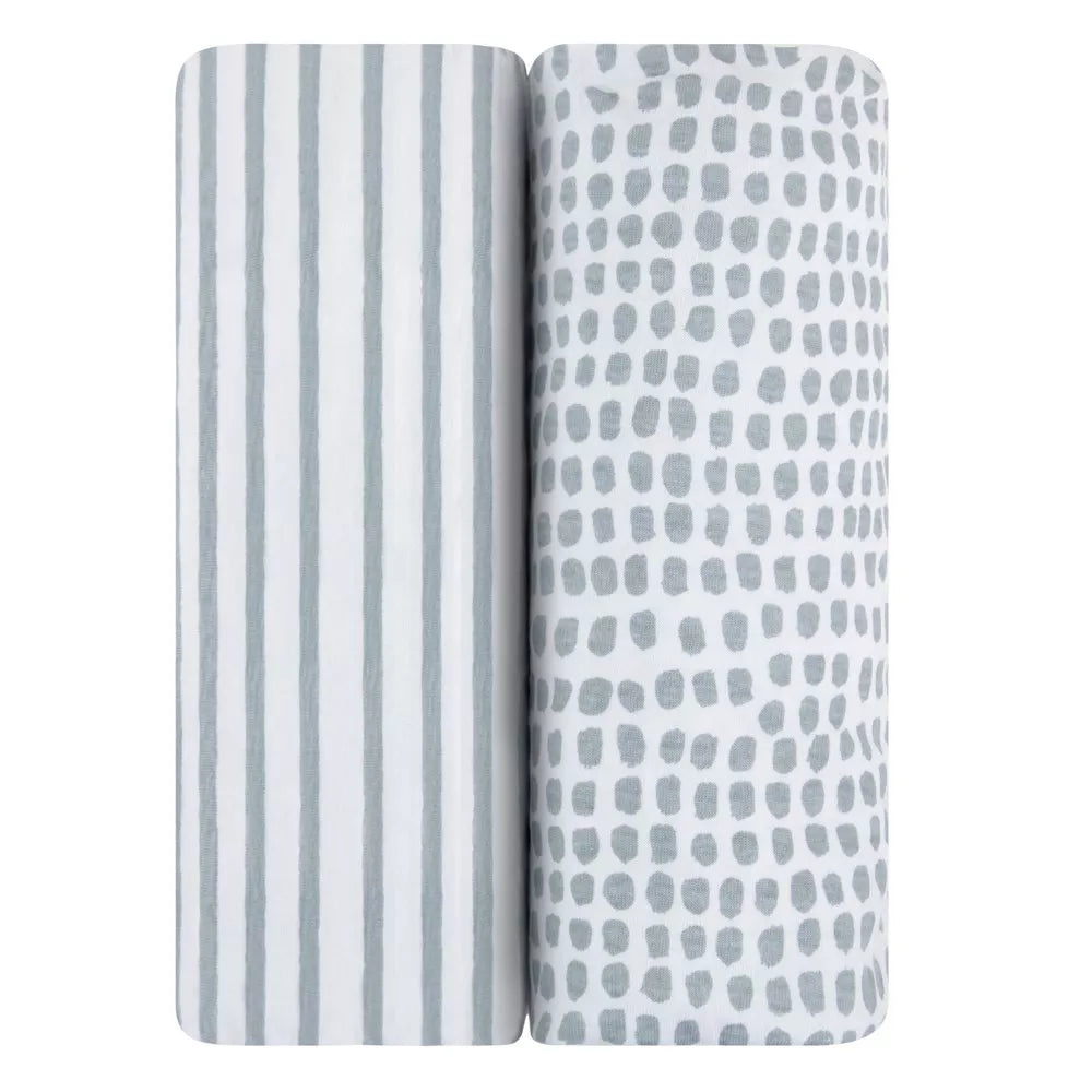 ELY`S & CO. WATERPROOF CRIB SHEETS 2 PACK STARS GREY STARS