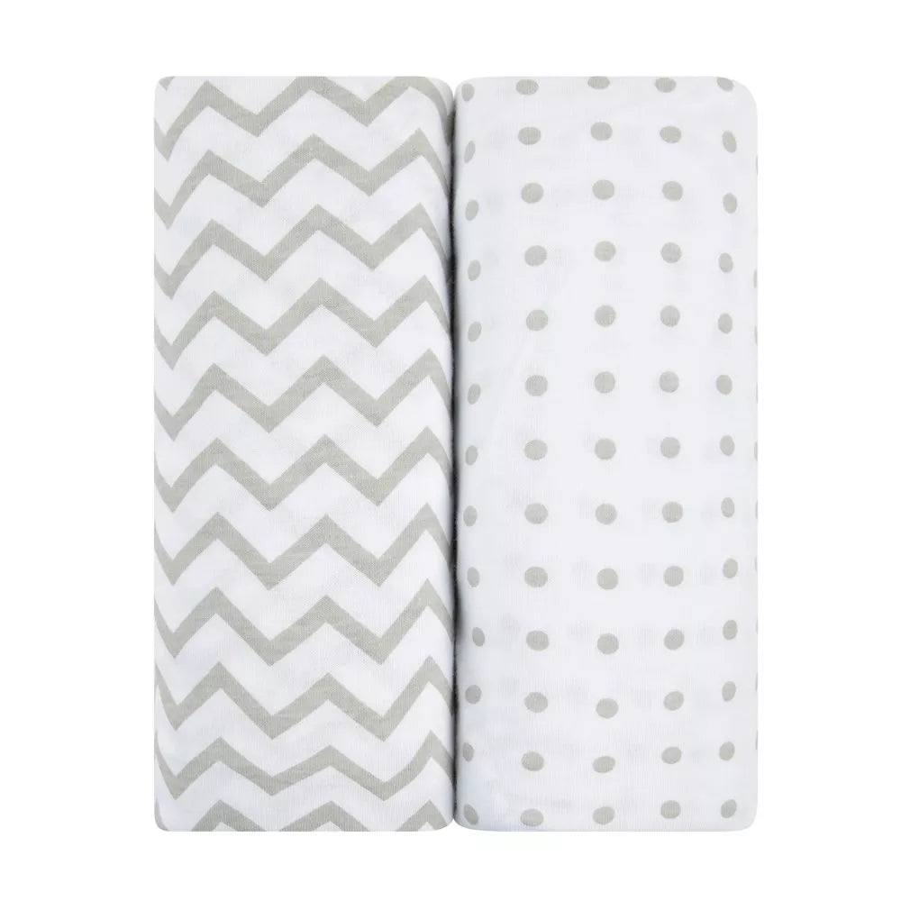 ELY`S & CO. WATERPROOF CRIB SHEET – 2 PACK GREY CHEVRON AND POLKA DOT