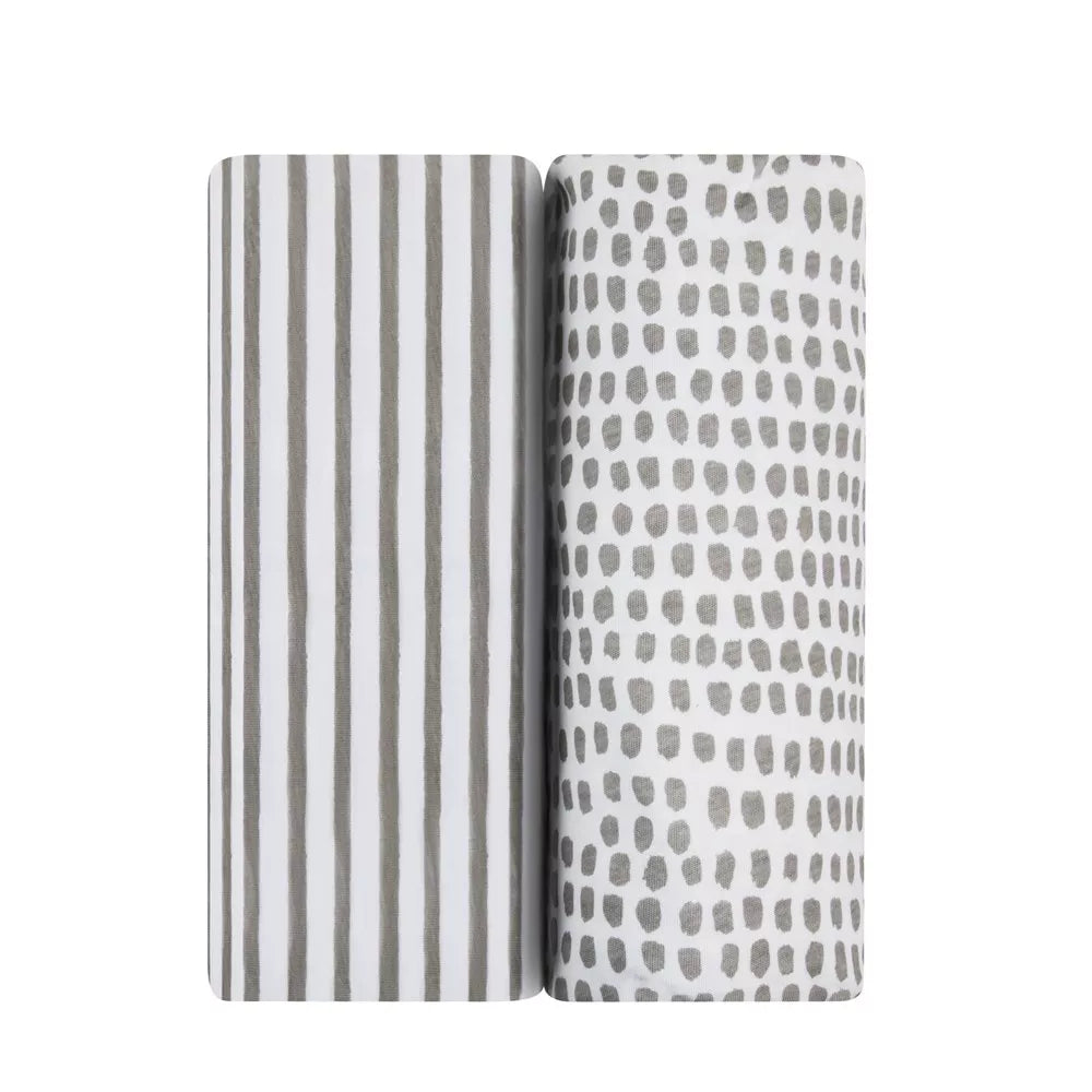 ELY`S & CO. WATERPROOF CRIB SHEET SET 100% JERSEY COTTON 2 PACK – STRIPES AND SPLASH TAUPE