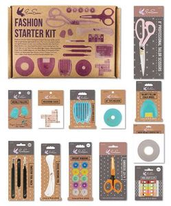 ES-EFB Eversewn 14pc Fashion Sewing Starter Kit: 20Needles, 2Pullers, 10Bobbins, 100Pins, Tools, 10Clips, 2Scissors, Ripper, 3Tweezers, Chalk, 2Tapes