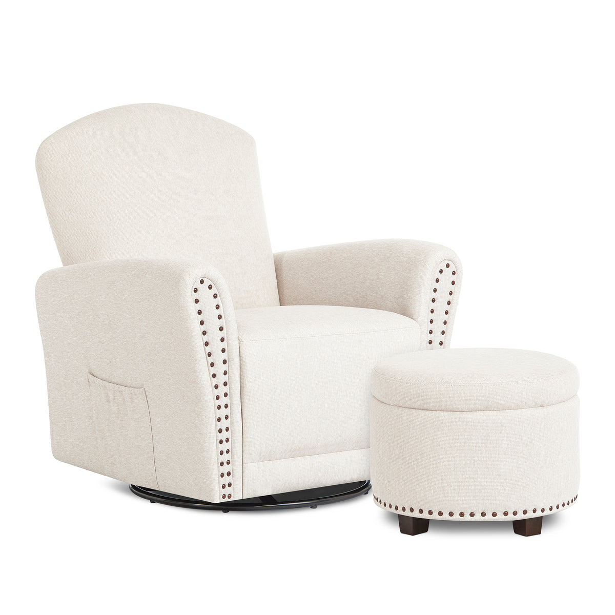 Evolur Vienna Swivel Glider with Ottoman & Nailhead Trim